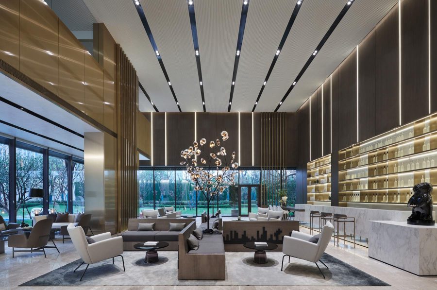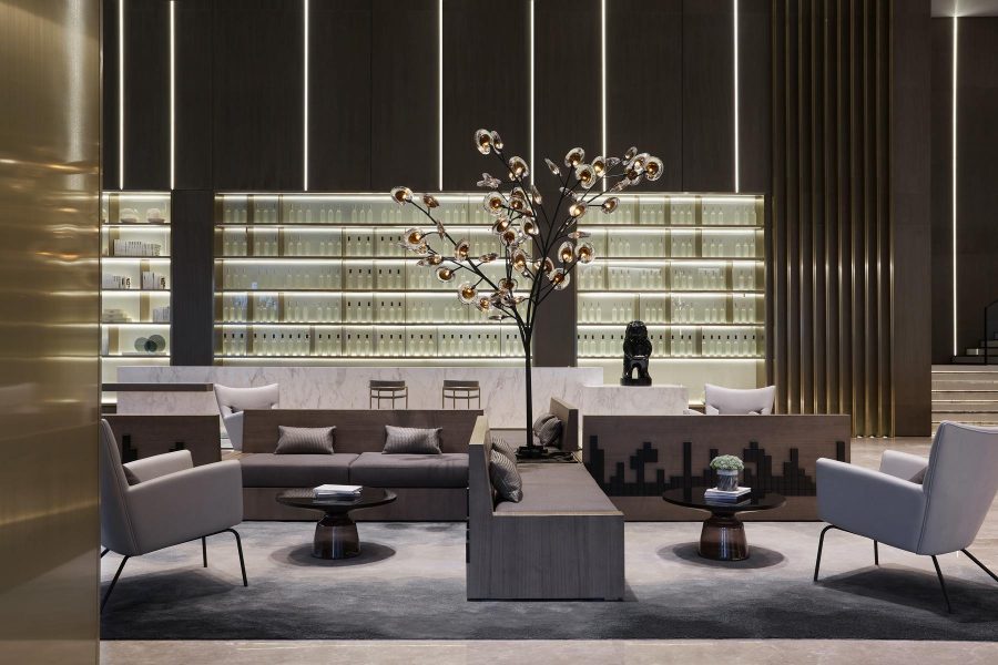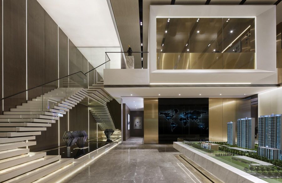 室内空间通过时尚的艺术氛围,传达不一般的感受。摈弃多余的材质,空间中选用大面积的黄铜拉丝不锈钢与木饰面相接,搭出极具视觉冲击力的多元层次,完成空间的艺术化表达。同时,用光影的营造手法将灯带藏于其中,带来更多的时尚与科技的感受,完美的比例分割,做到多一分则多少一分则少的境界。