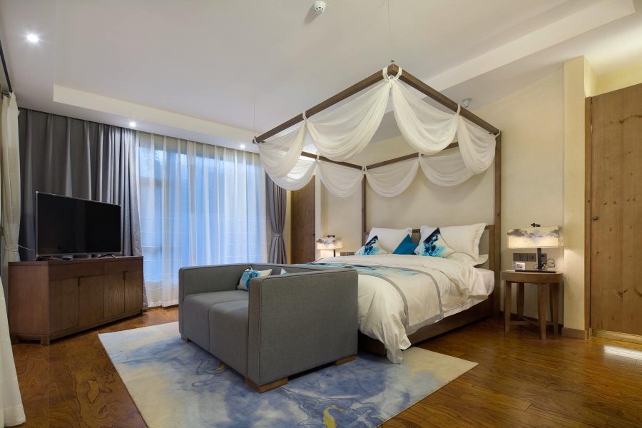 一架古琴几幅水墨,博古架上的青瓷和古玩