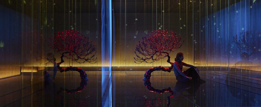 于是,我们在设计中利用玻璃既透明又反射的戏剧化效果,去展现被隐藏的内容;去定格那些短暂的瞬间;去表达那些无言的话语;去精致地体现出光影的玩味与周边环境的融洽平衡,使得被拽离日常的访客仿佛置身一个模糊了三维深度感的空间中,同时动态的画面又向着时空方向进行四维转化。在这样神秘、深邃的地方,日渐汹涌的浮躁与喧嚣,连悲伤都不能专心致志的人们,会被轻柔的水缓缓融化。在这里,能看到光慢慢轻抚着物体,能听到花渐渐开放的声音。在这里,洗涤的不仅仅是人的身体,还有人的心灵!在这里,你不能做我的诗 ,但我可以做你的梦。